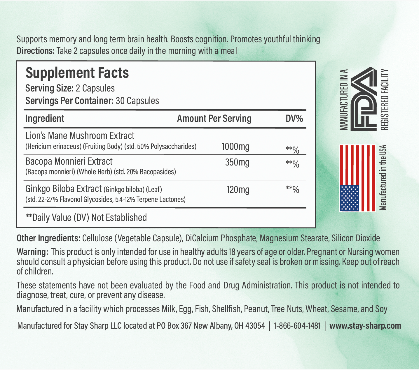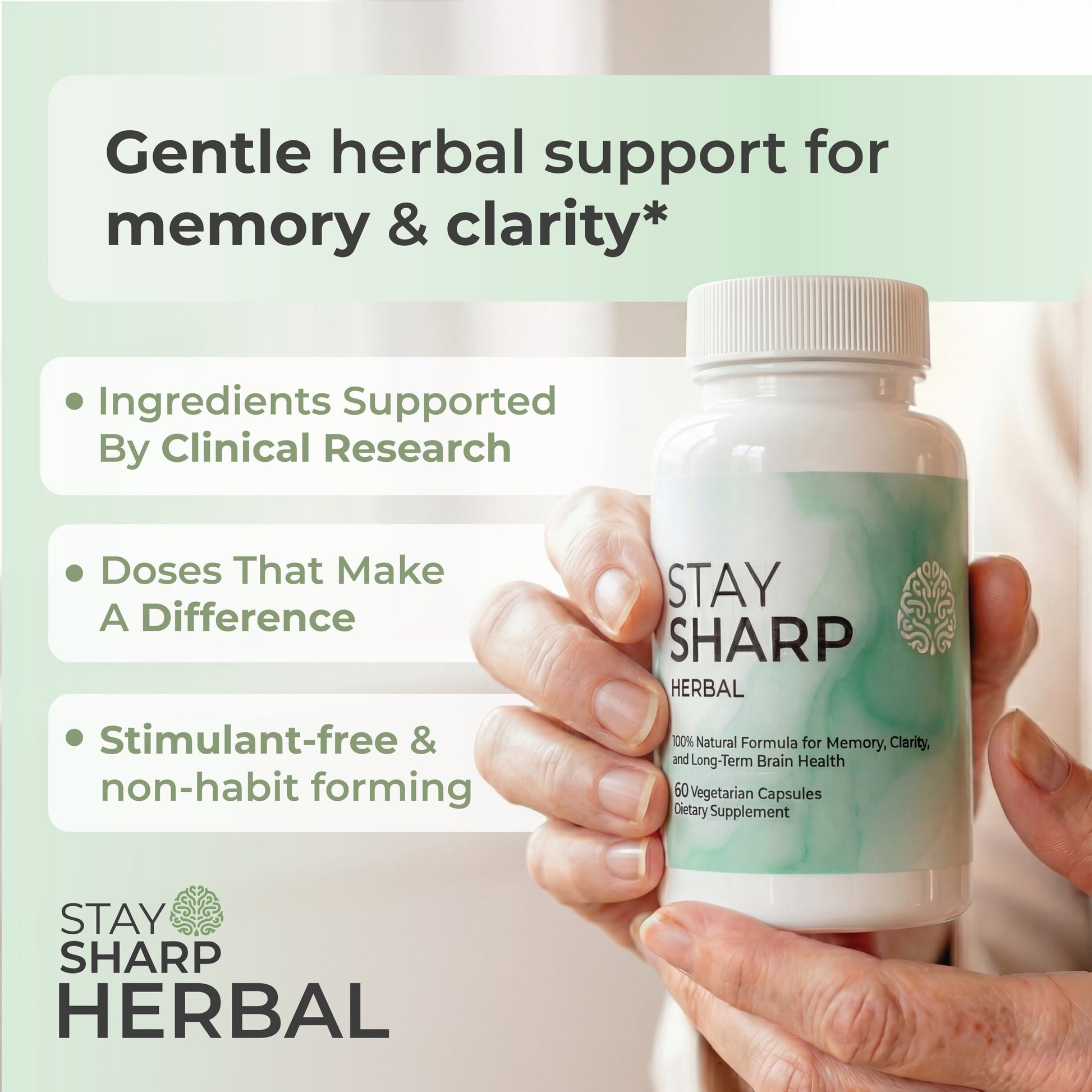 Improves Blood Flow, Brain Function & Antioxidant ProtectionGinkgo biloba is one of the most studied botanicals for healthy brain aging. Traditionally used in Chinese medicine for circulation, modern research shows ginkgo extracts help support blood flow to the brain, deliver oxygen and nutrients more efficiently, and provide antioxidant protection against everyday oxidative stress. Together, these actions help maintain clear thinking, memory, and mental performance as we get older.